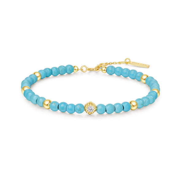Sterling Silver 14K Gold-Plated Ania Haie's Chill Voyager Cubic Zirconia And Turquoise Bracelet. The Length Is 6.5 Inches With Two 1/2 Inch Extensions.