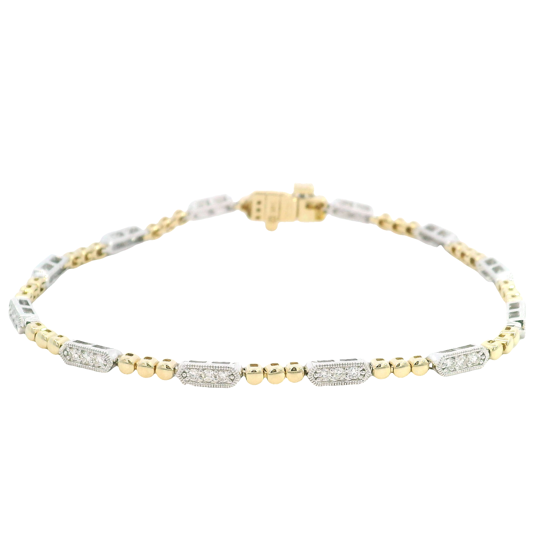 Diamond Bracelet In Gold. 14K Two-Tone Gold Diamond Bracelet. 0.496 Total Diamond Weight With H/I Color And SI1 Clarity. 7 Inches.