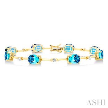Gemstone Bracelet. 10K Yellow Gold Blue Topaz And Diamond Bracelet. 0.25 Total Diamond Weight With I/J Color And SI3 Clarity. 7 Inches.