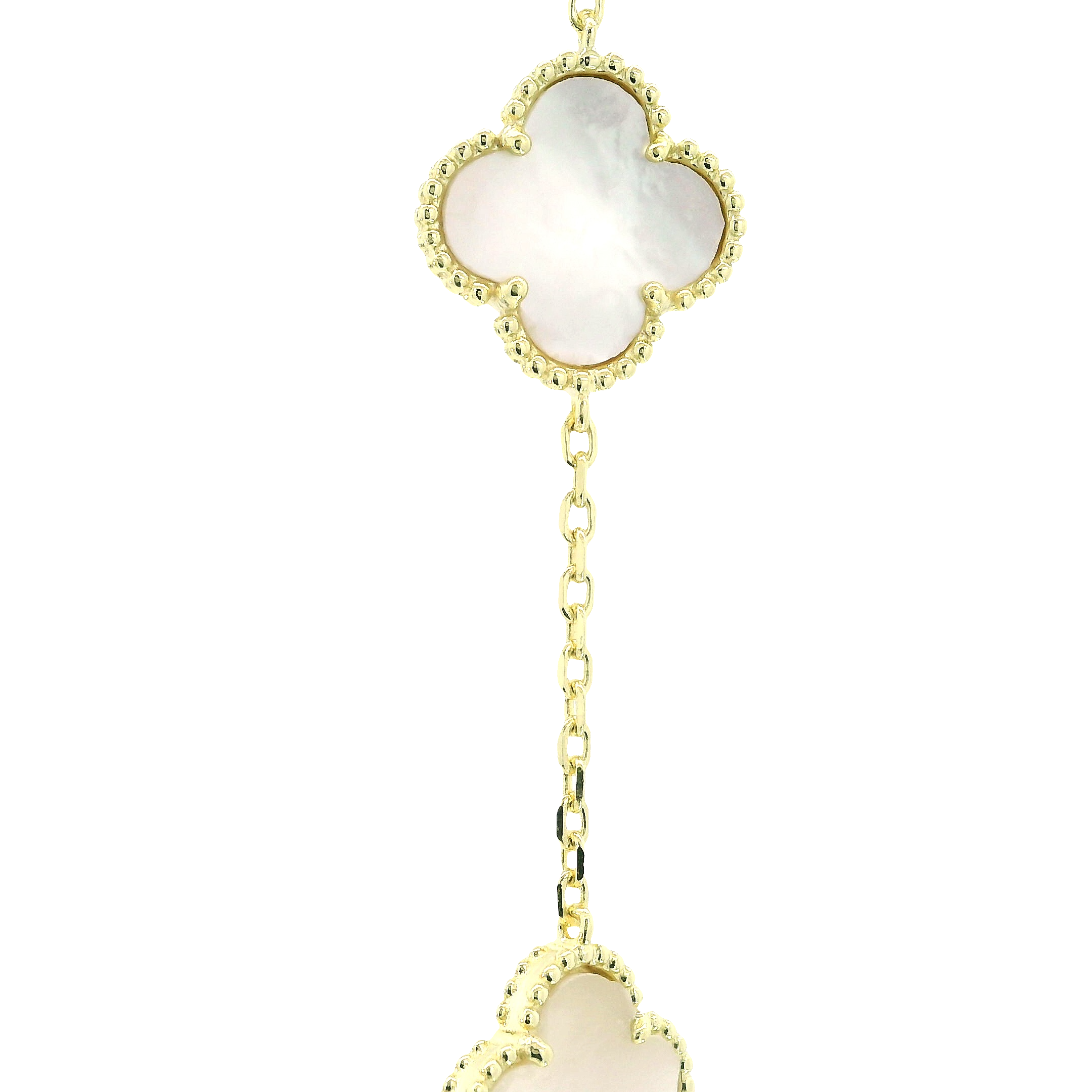 Silver Gold-Plated Bracelet. Sterling Silver Yellow Gold-Plated Mother Of Pearls Clover Bracelet. 8 Inches Of Sterling Silver Gold-Plated Cable Link Chain With One Inch Of Abridgements And Fancy Lobster Clasp.
