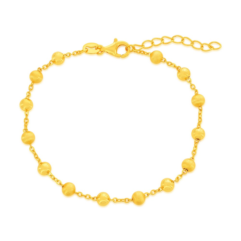 Gold-Plated Bracelet. Cable Link Sterling Silver Gold-Plated Beaded Bracelet. 7 Inches Of Sterling Sliver Gold-Plated Cable Link Chain With One Inch Of Abridgements And Fancy Lobster Clasp.