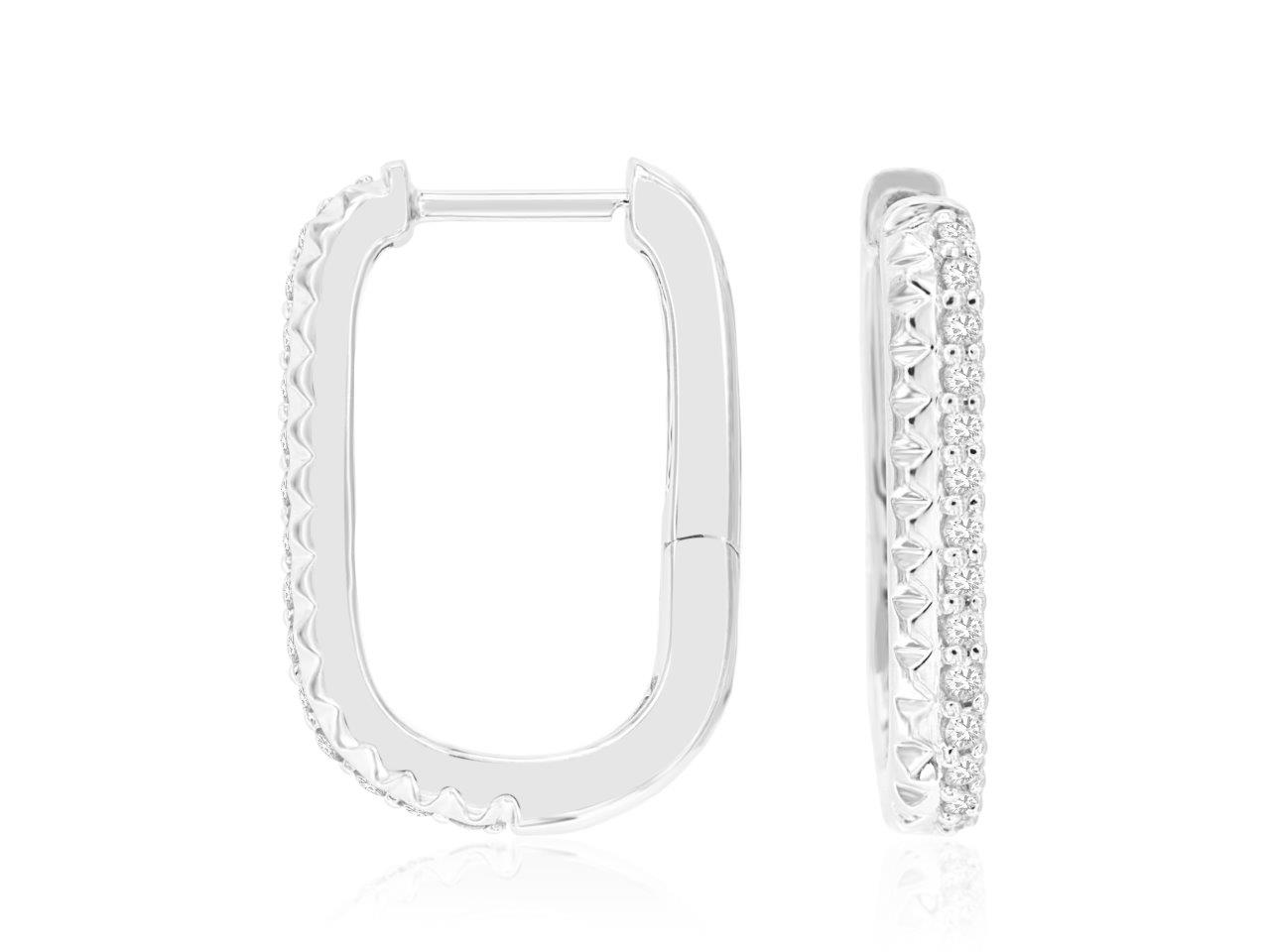 Diamond Earrings. 14K White Gold Diamond Hoop Huggies. 0.26 Total Diamond Weight With H Color And SI2 Clarity.