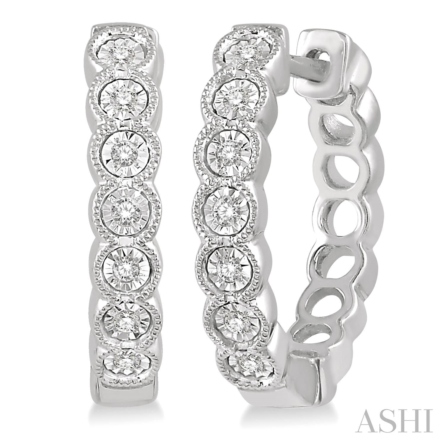 Diamond Earrings. 10K White Gold Diamond Hoop Earrings. 0.10 Total Diamond Weight With I/J Color And I1-I2 Clarity.