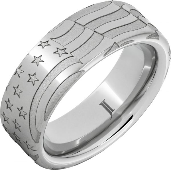 Fancy Wedding Band. White Tone Serinium Old Glory Flag Ring. Finger Size 10.