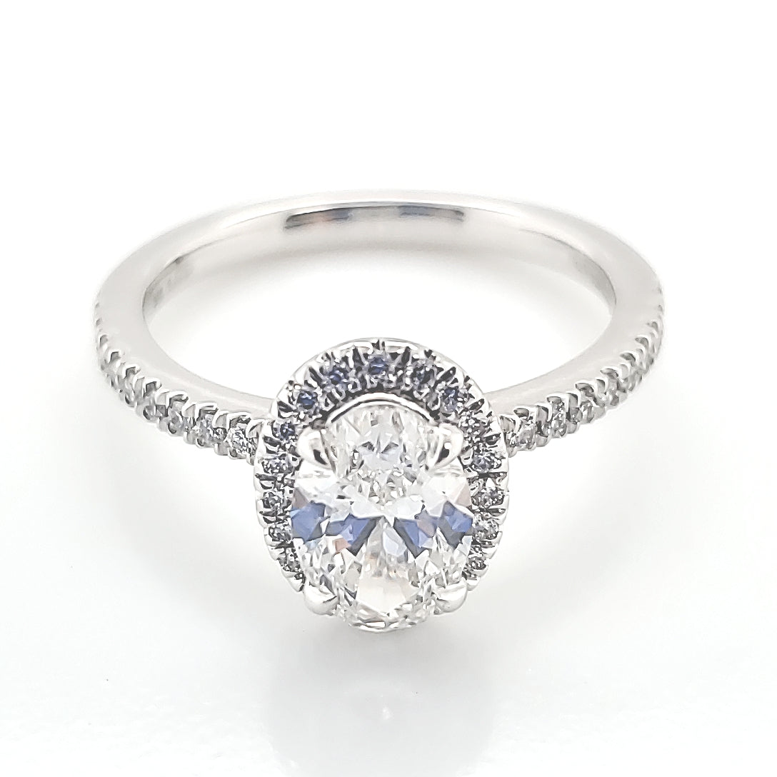 Lab Grown Diamond Engagement Ring. 14K White Gold Oval Lab Created Diamond Engagement Ring. Vs1 Clarity G Color 1.04 Carat Center Diamond. 1.29 Total Carat Weight Of Ring. GCAL 241140-29