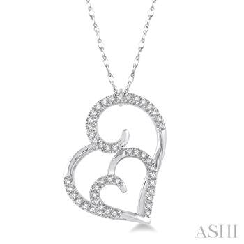Diamond Pendant In Gold. 10K White Gold Diamond Heart Pendant On 10K White Gold 18 Inch 0.40 mm Singapore Chain With Spring Ring Clasp. The Total Diamond Weight Is 0.166 Carats With I/J Color And I1-I2 Clarity.
