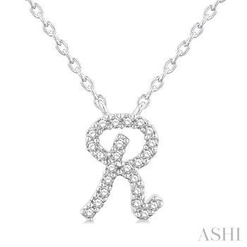 Diamond Pendant In Gold. 10K White Gold Rhodium-Plated Diamond Initial "R" Pendant On 18 Inch 10K White Gold Rhodium-Plated Cable Link Chain With Two 1 Inch Extensions And Spring Ring Clasp. 0.07 Total Diamond Weight With I/J Color And I1-I2 Clarity.