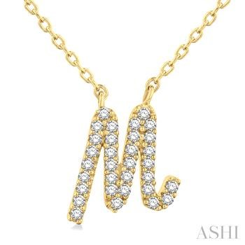Diamond Pendant In Gold. 10K Yellow Gold Diamond Initial "M" Pendant On 18 Inch 10K Yellow Gold Cable Link Chain With Two 1 Inch Extensions And Spring Ring Clasp. 0.10 Total Diamond Weight With I/J Color And I1-I2 Clarity.