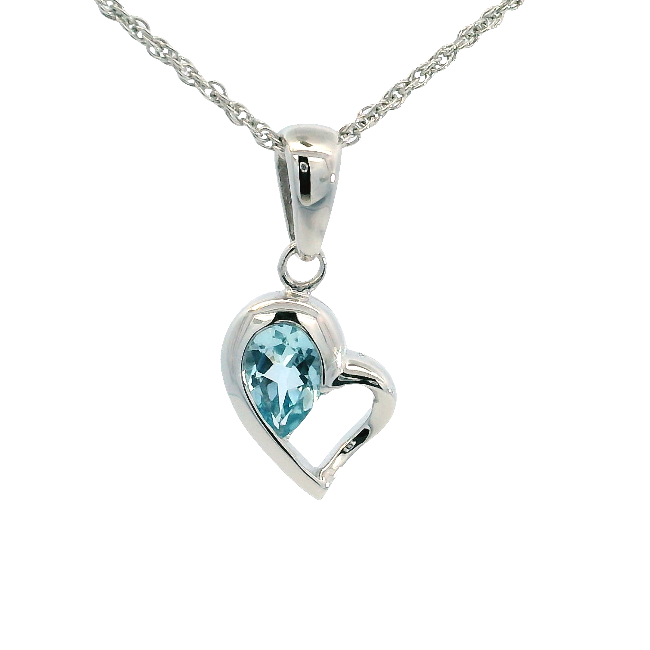 Gemstone Pendant. Sterling Silver Blue Topaz Pendant On Sterling Silver Rhodium-Plated 20 Inch Loose Rope Chain With Extensions. 0.80 Carats Of Blue Topaz.