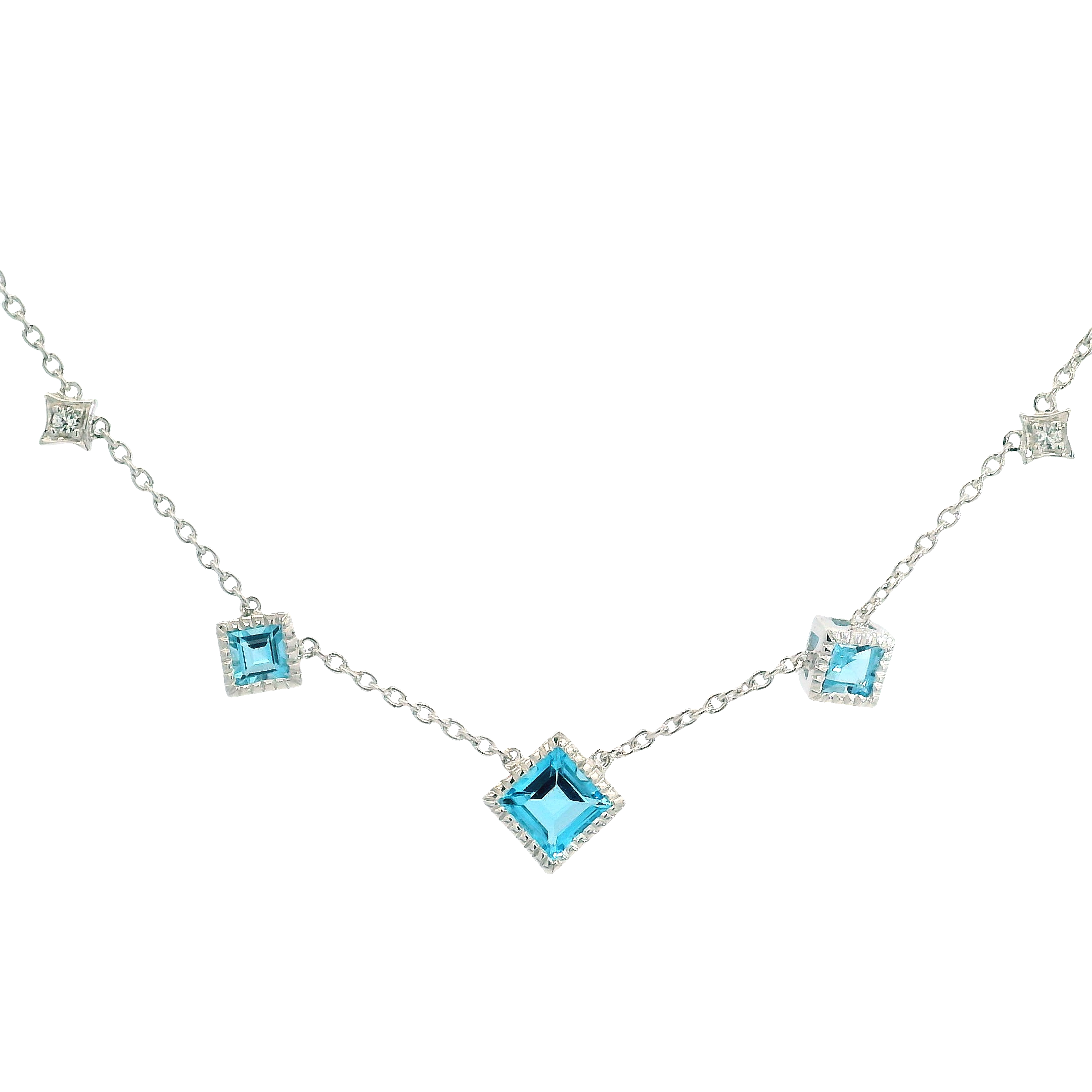Sterling Silver Gemstone Necklace. Sterling Silver Blue And White Topaz Pendant.1.84 Carats Of Blue Topaz And 0.15 Carats Of White Topaz. 19 Inches.