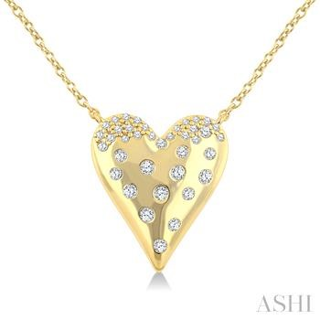 Diamond Pendant In Gold. 10K Yellow Gold Diamond Heart Pendant On 18 Inches Of 10K Yellow Gold Cable Link Chain With Two 1 Inch Extenders. 0.19 Total Diamond Weight With I/J Color And SI3 Clarity.
