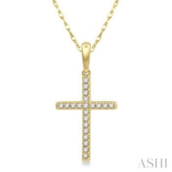 Diamond Pendant In Gold. 10K Yellow Gold Diamond Cross Pendant On 10K Yellow Gold 18 Inch 0.4mm Loose Rope Chain With Spring Ring Clasp. 0.11 Total Diamond Weight With I/J Color And I1-I2 clarity..