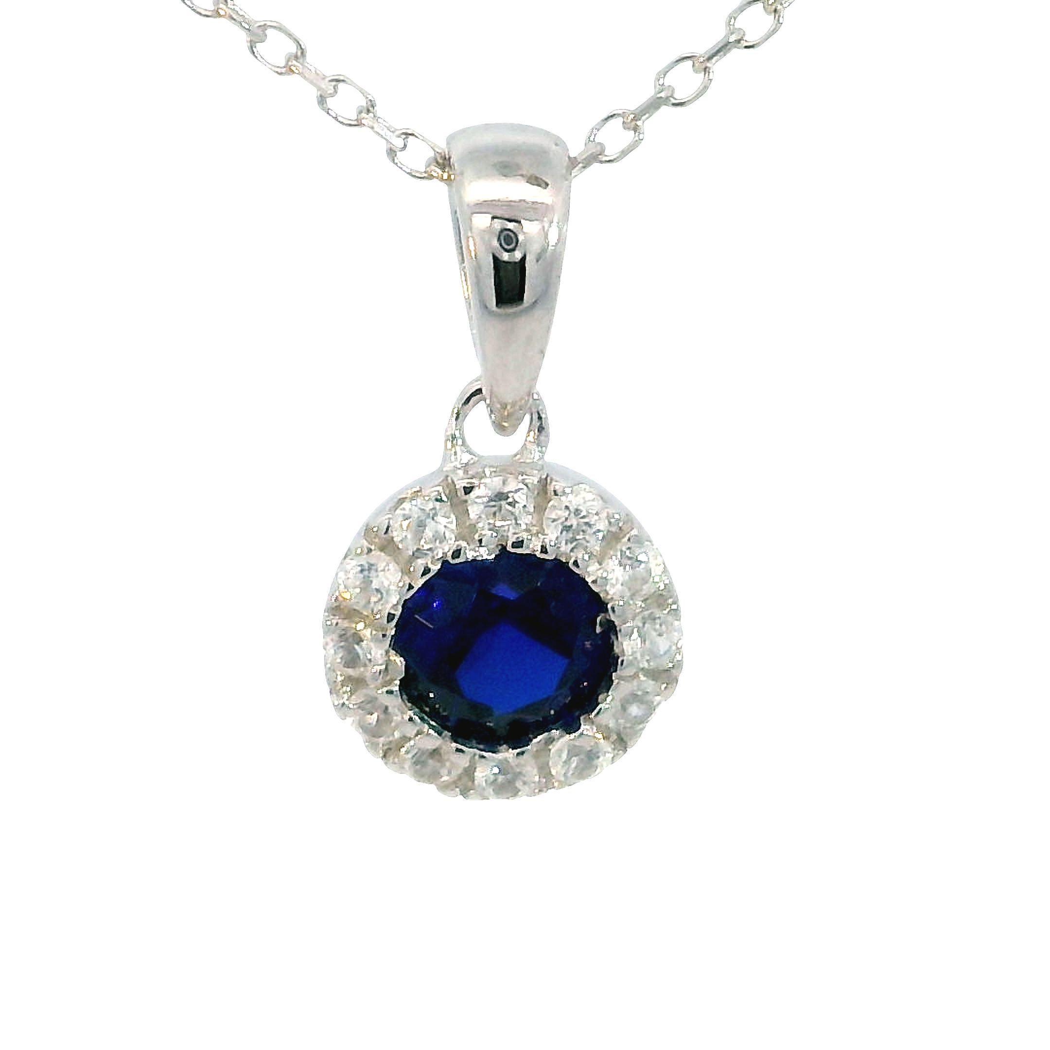 Gemstone Pendant. Sterling Silver Sapphire And Zircon Pendant. Comes With 18 Inch Sterling Silver Rhodium-Plated Box Chain.