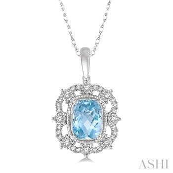 Gemstone Pendant. 10K White Gold Aquamarine And Diamond Pendant On 18 Inch 10K White Gold Box Chain With Spring Ring Clasp. 0.20 Total Diamond Weight With I/J Color And I1-I2 Clarity.