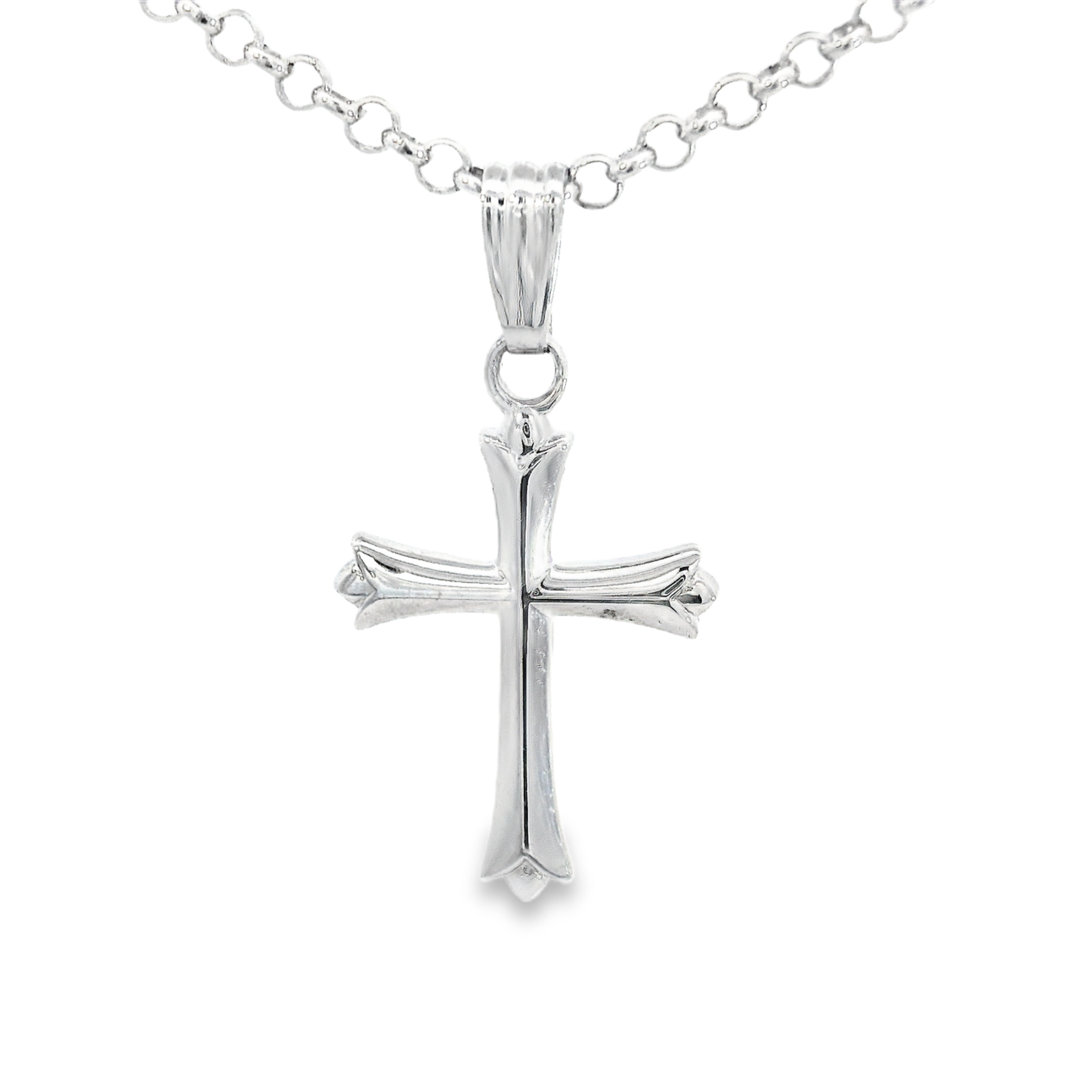 Sterling Silver Cross On A 18" Sterling Silver Cable Chain With Lobster Clasp.