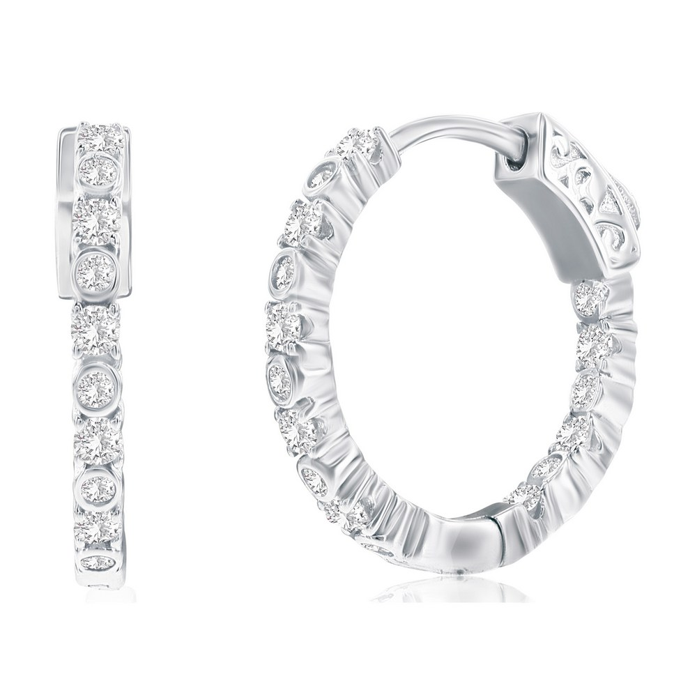 Silver Earrings. Sterling Silver Rhodium-Plated In-Out Cubic Zirconia Hoop Earrings.