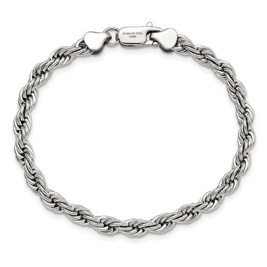Steel Bracelet. Stainless Steel 6mm 9 Inch Rope Bracelet With Lobster Clasp.