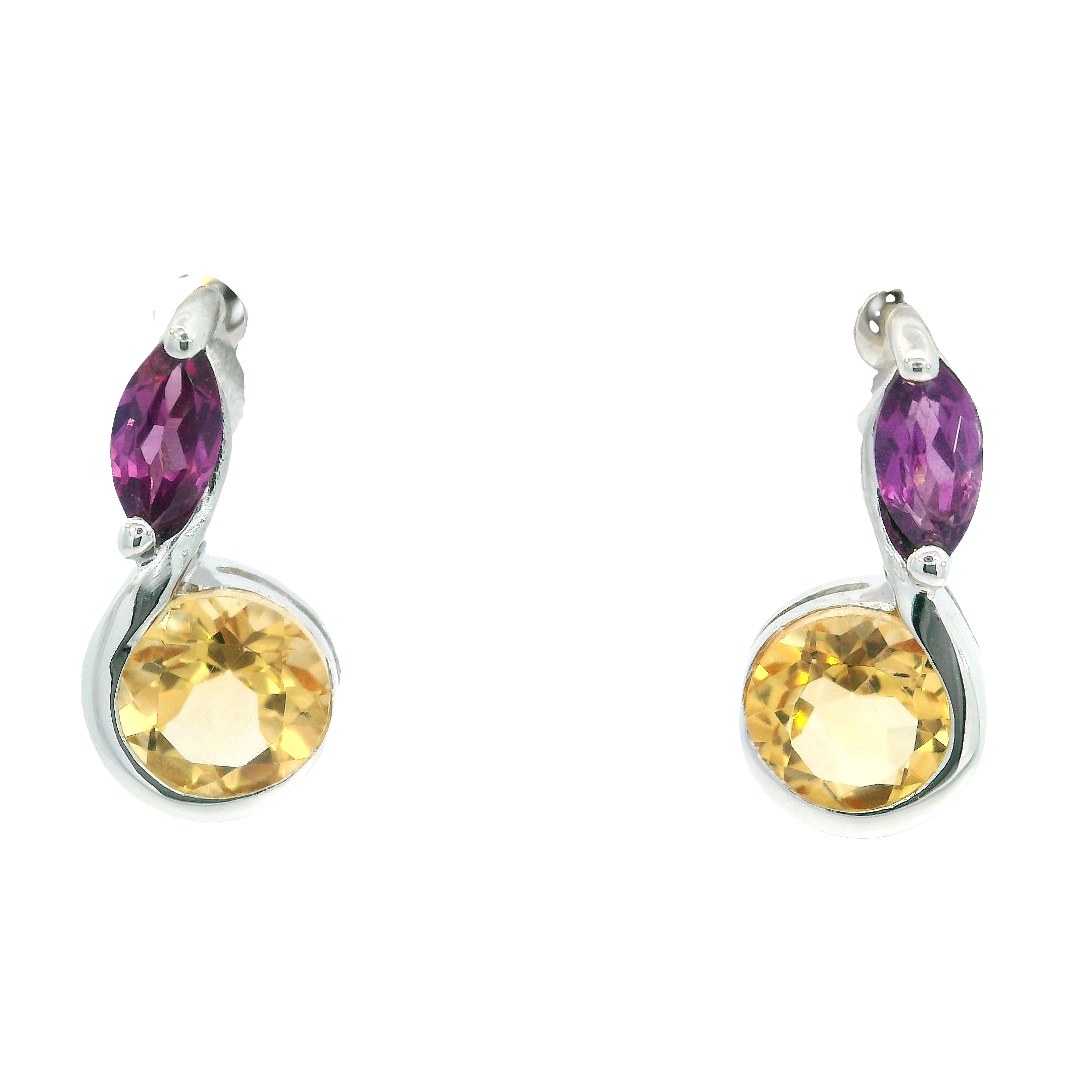 Silver Gemstone Earrings. Sterling Silver Garnet And Citrine Post-Back Earrings. 1.16 Total Gemstone Weight.