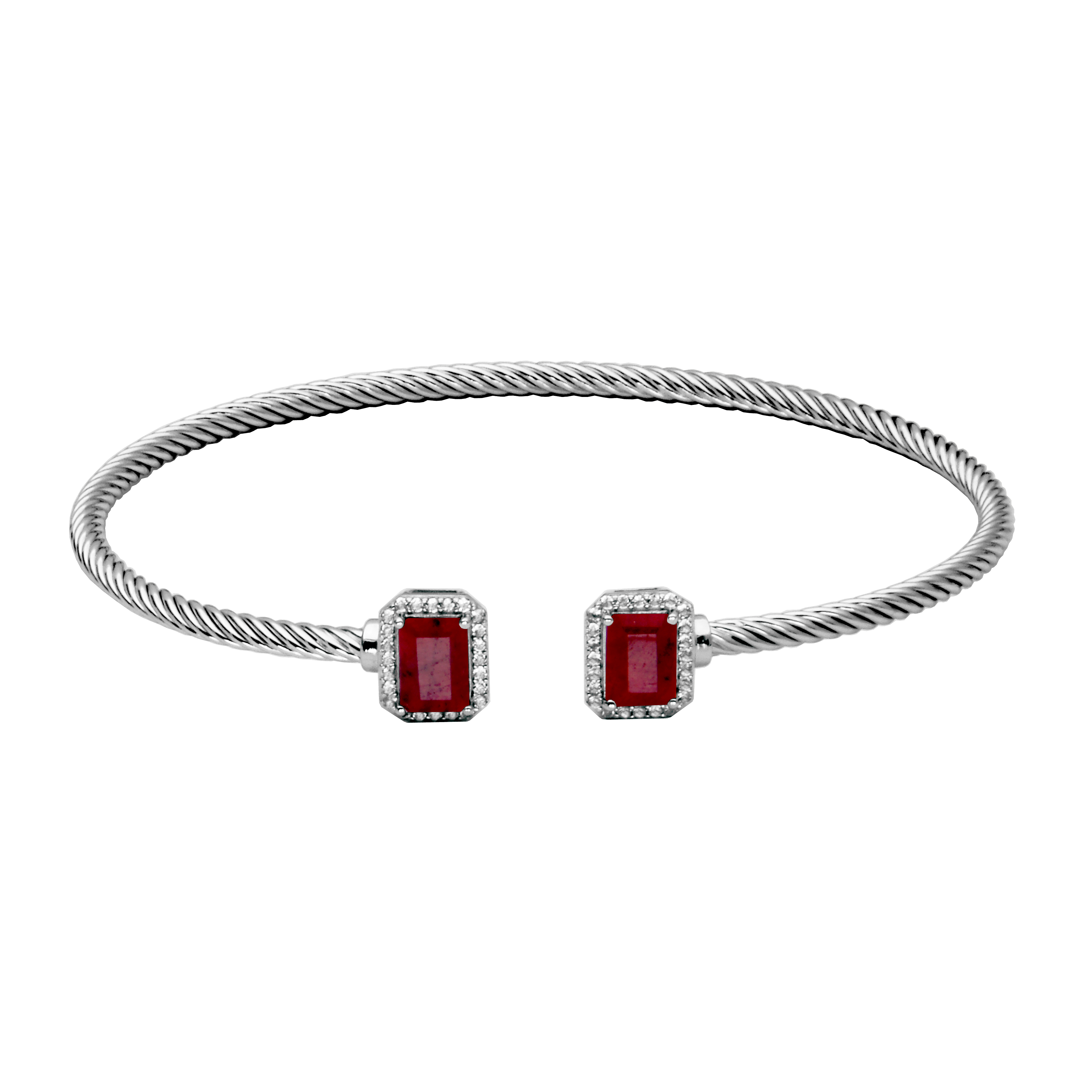 Sterling Silver Bracelet. Sterling Silver 7x5mm Emerald Cut Dyed Red Sapphire and White Topaz Accents 7.25 Inch Bangle Bracelet
