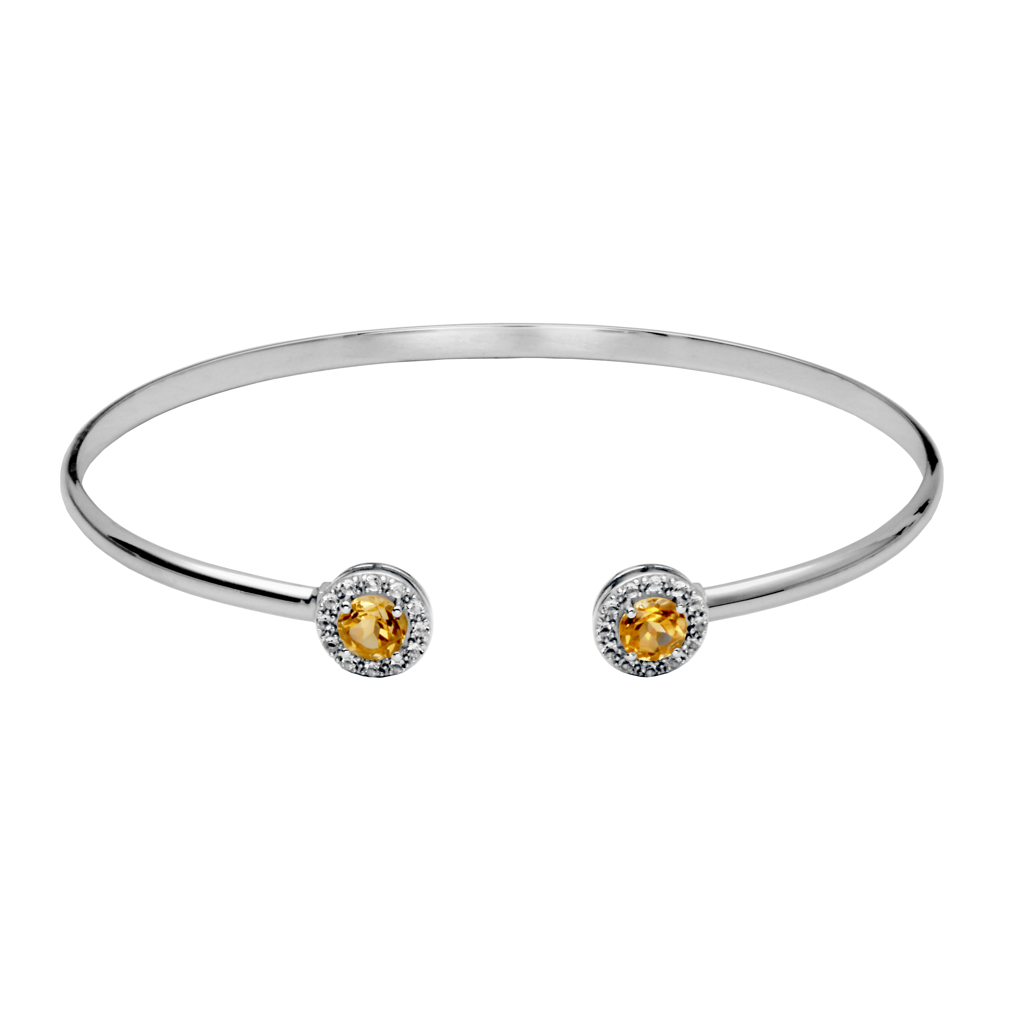 Sterling Silver Bracelet. Sterling Silver 5mm Round Cut Genuine Citrine and White Topaz Accents 7.25 Inch Bangle Bracelet.