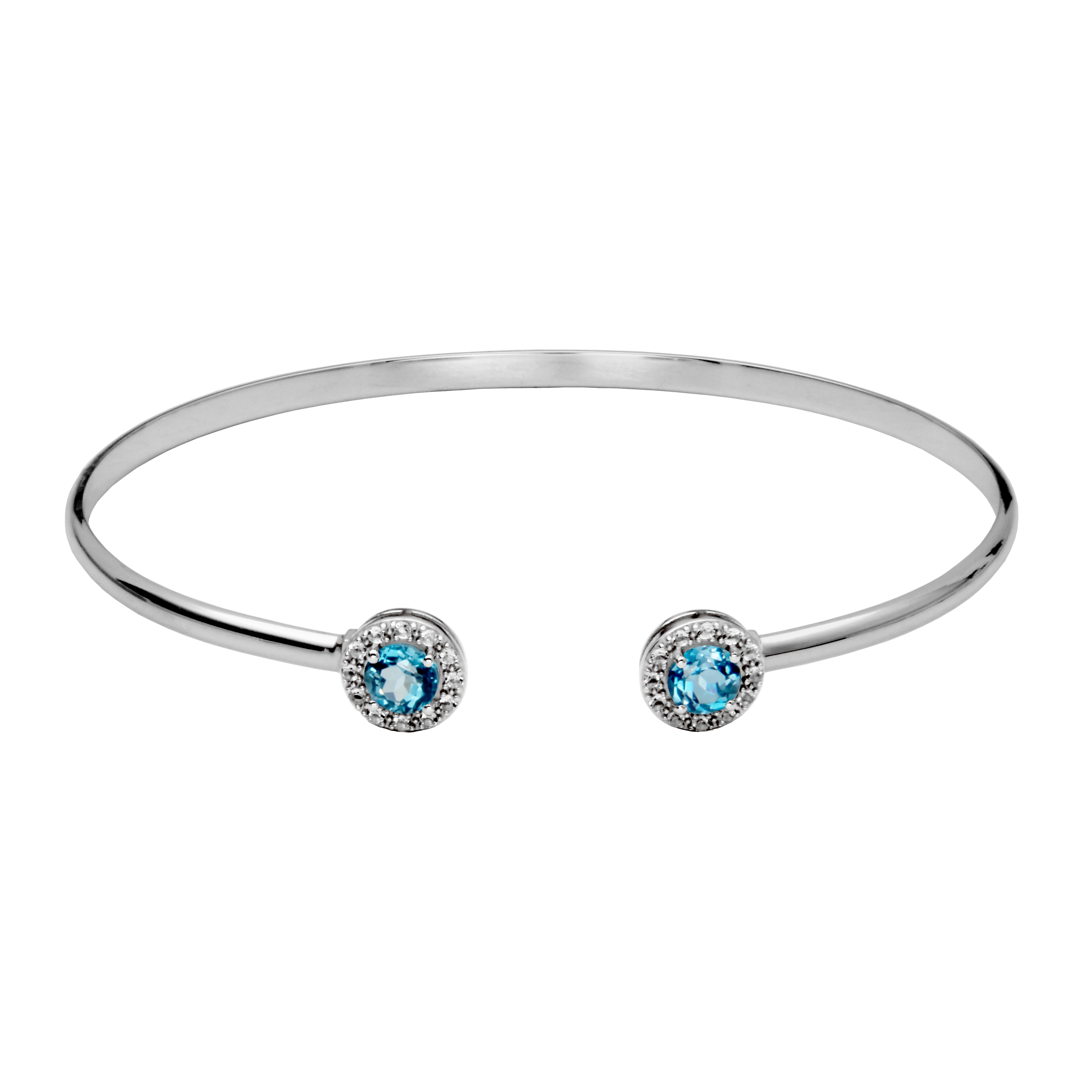 Sterling Silver Bracelet. Sterling Silver Genuine 5mm London Blue Topaz and White Topaz Accents 7.25 Inch Bangle Bracelet.