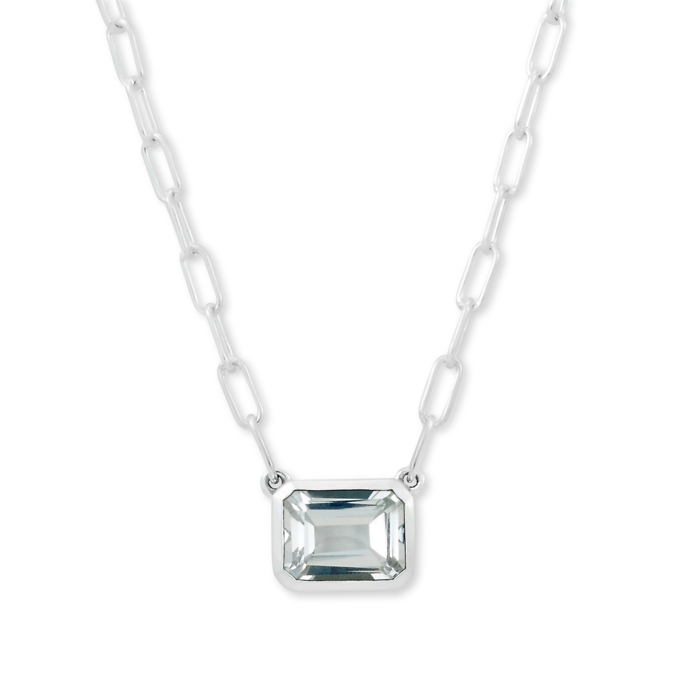 Sterling Silver Necklace. Sterling Silver Emerald Cut White Topaz Pendant on 20" Chain