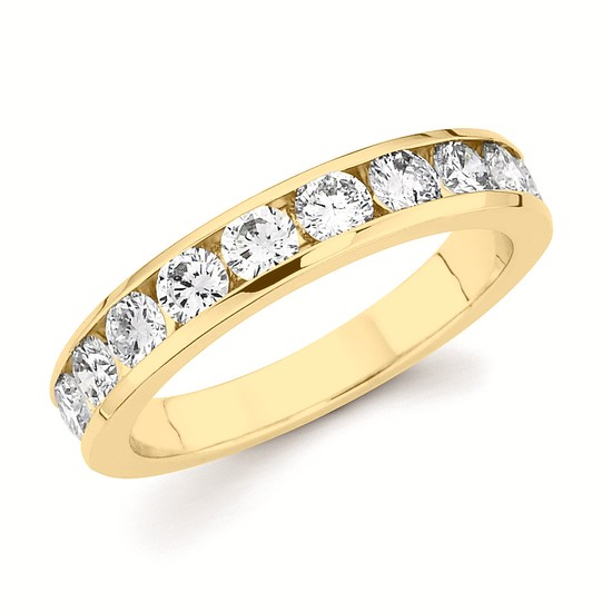 Diamond Wedding Band. 14K Yellow Gold Channel Set Diamond Wedding Band. 1.00 Total Carat Weight With I1 Clarity And I Color. Finger Size 6.25.