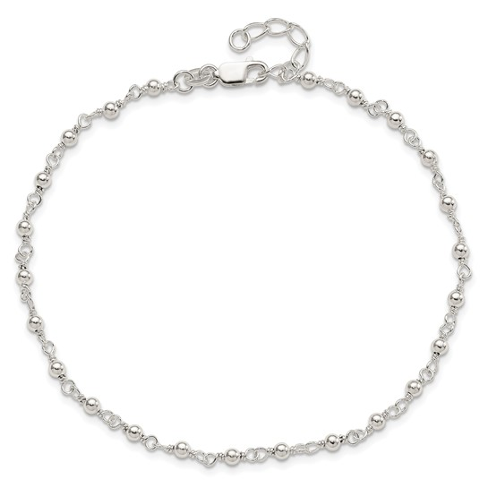 Sterling Silver Fancy Beaded Ankle Bracelet 9 Inches plus 1 inch extender