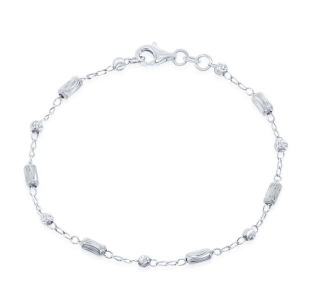 Sterling Silver Diamond Cut Small Bar and Bead Anklet