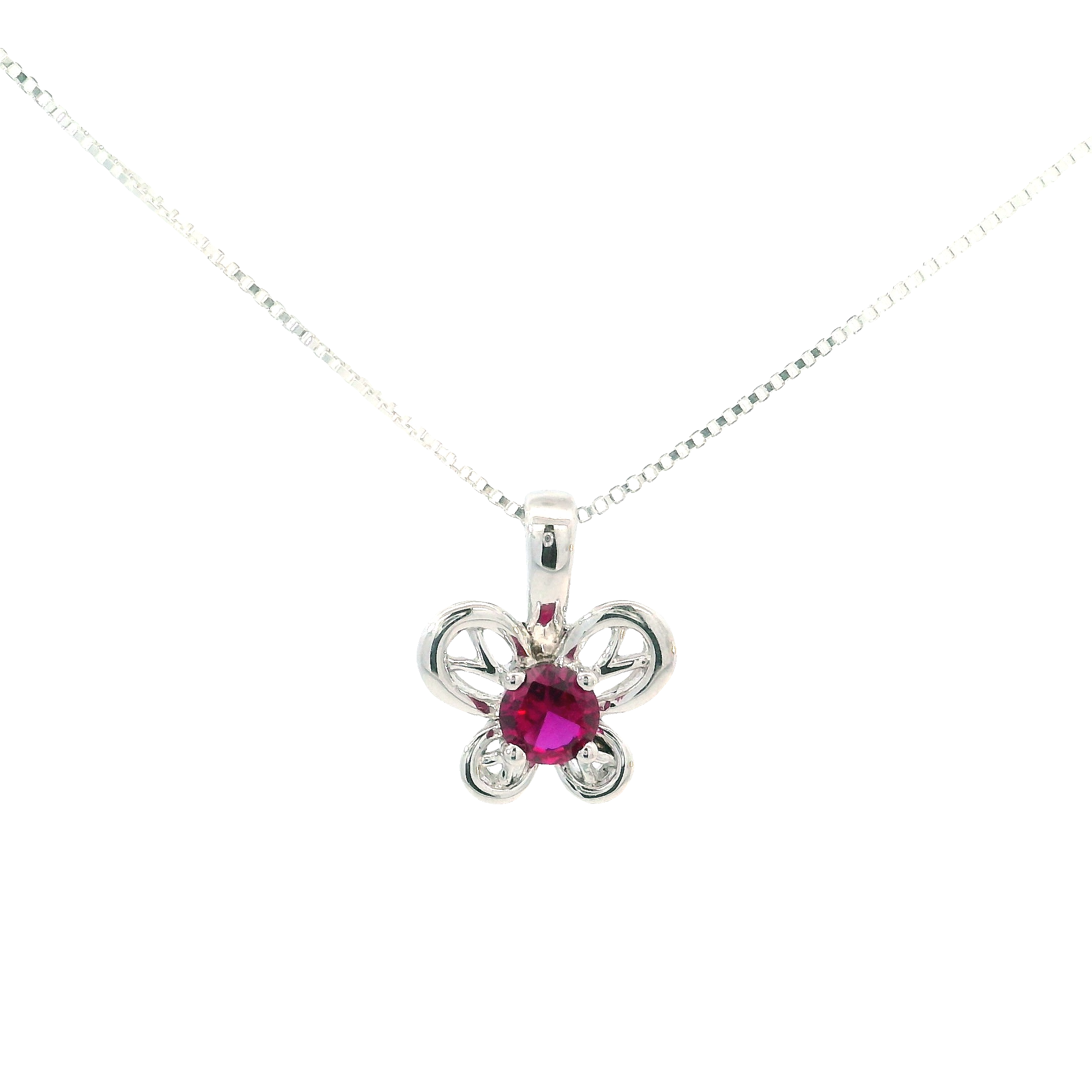 Childrens Jewelry. Sterling Silver Birthstone Butterfly Pendant On 16 Inch Sterling Silver Box Chain. Ruby