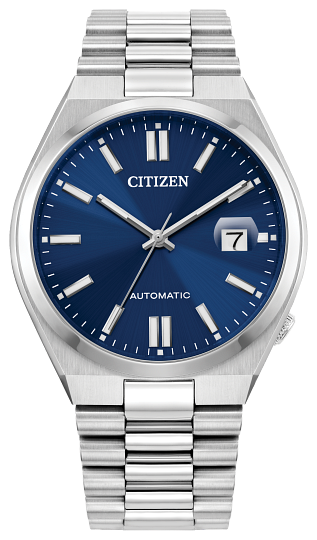 Men's Citizen Watch. Stainless Steel White-Tone Men's Tsuyosa Timepiece. The Tsuyosa Automatic Brings Ultramodern Sports Styling Right To Your Wrist. Executed In A Versatile 40mm Footprint, The Sophisticated Design Of The Watch Makes A Strong Impression Via A Silver-Tone Stainless Steel Case And A Seamlessly Integrated, Matching Bracelet. Underneath An Anti-Reflective Sapphire Crystal, The Sporty Timepiece Makes Use Of A Sunray Blue Dial, With A 3 O’Clock Date Window And Contrasting Silver-Tone Details Adding To Its Classic Aesthetic. Powered By An Automatic Movement And Offering Up To 50 Meters Of Water Resistance, The Refined Timepiece Is A Daily Wearing Choice Ready For Work, Play, And Everything In Between. Caliber 8210.
