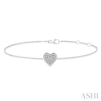 Diamond Bracelet In Gold. 10K White Gold Diamond Heart Bracelet. 0.125 Total Diamond Weight With I/J Color And I1-I2 Clarity. 7 Inches Total With Two 1/2 Inch Extensions.