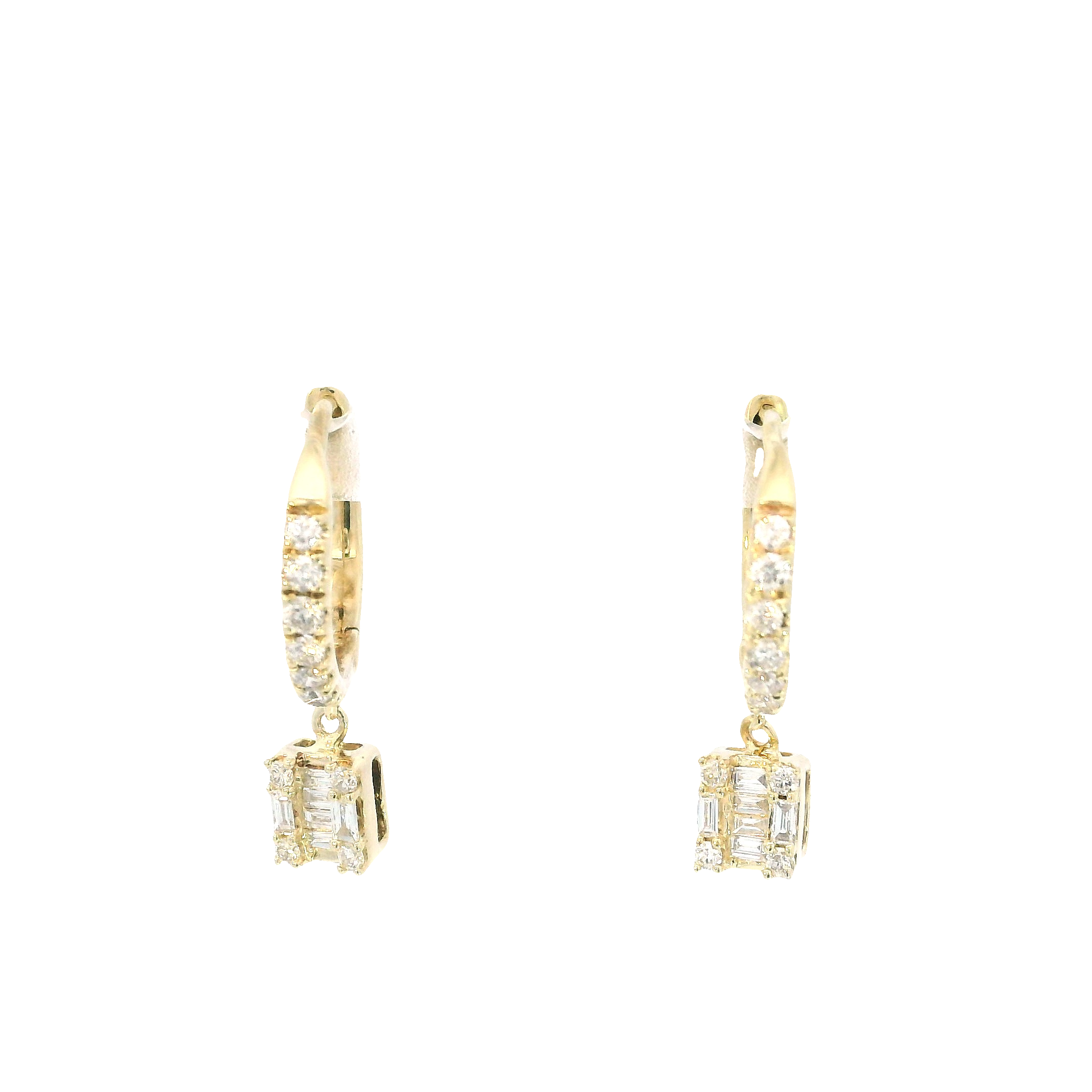 Diamond Earrings. 10K Yellow Gold Petite Square Shape Fusion Diamond Fashion Hoop Huggies. 0.33 Total Diamond Weight With I/J Color And SI3 Clarity.