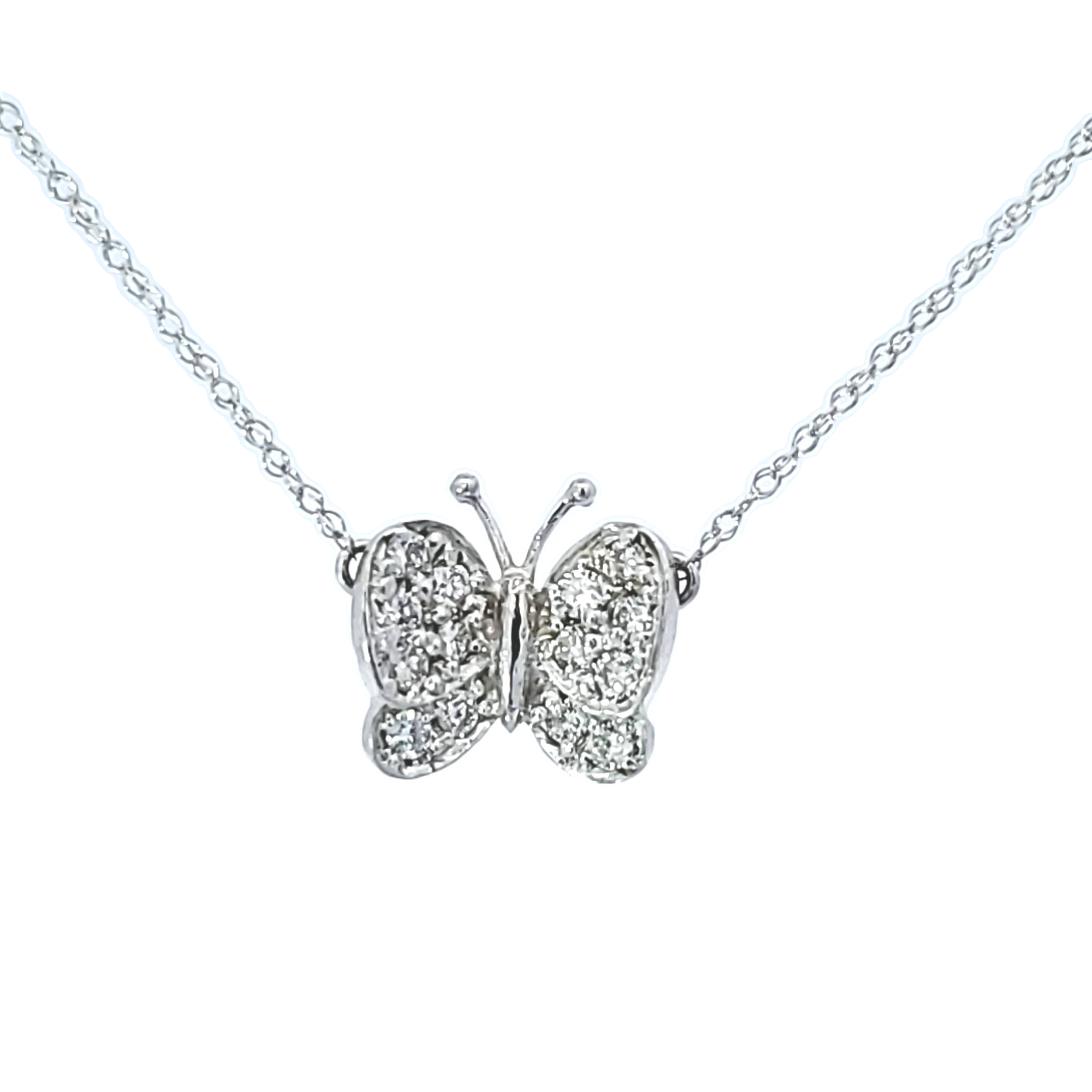 14k White Gold Diamond Butterfly Pendant on 14K WG 0.8mm Diamond Cut Cable Chain