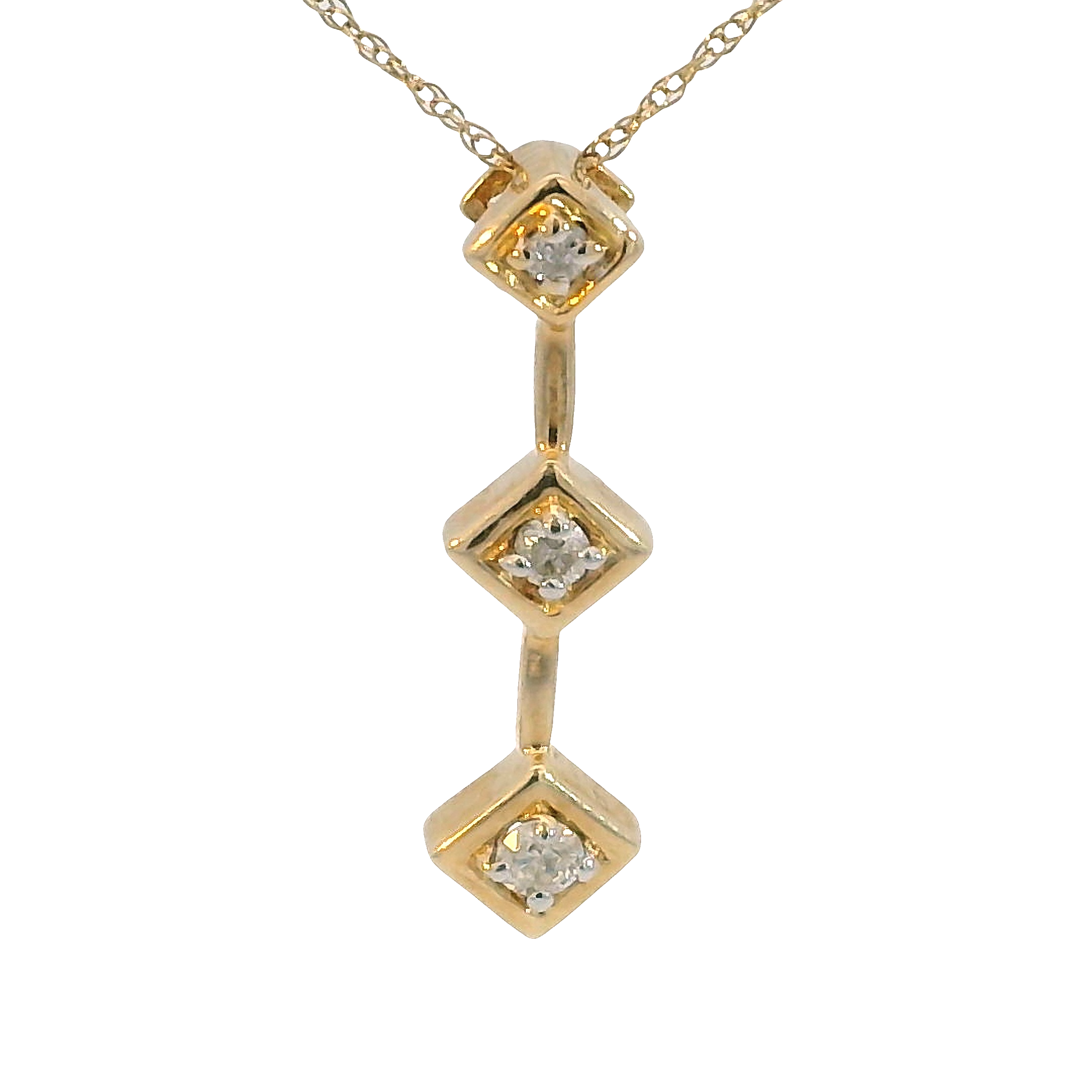 Diamond Pendant In Gold. 14K Yellow Gold Geometric Diamond Pendant On 14K Yellow Gold 1.2 mm 18 Inch Rope Chain. Total Diamond Weight Is 0.08 Carats.