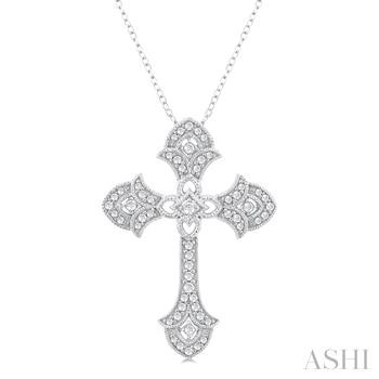 Diamond Pendant In Gold. 14K White Gold Rhodium-Plated Diamond Cross Pendant On 14K White Gold Rhodium-Plated 18 Inch Cable Link Chain With Spring Ring And Two 1 Inch Extensions. 0.25 Total Diamond Weight With I/J Color And SI3 Clarity.