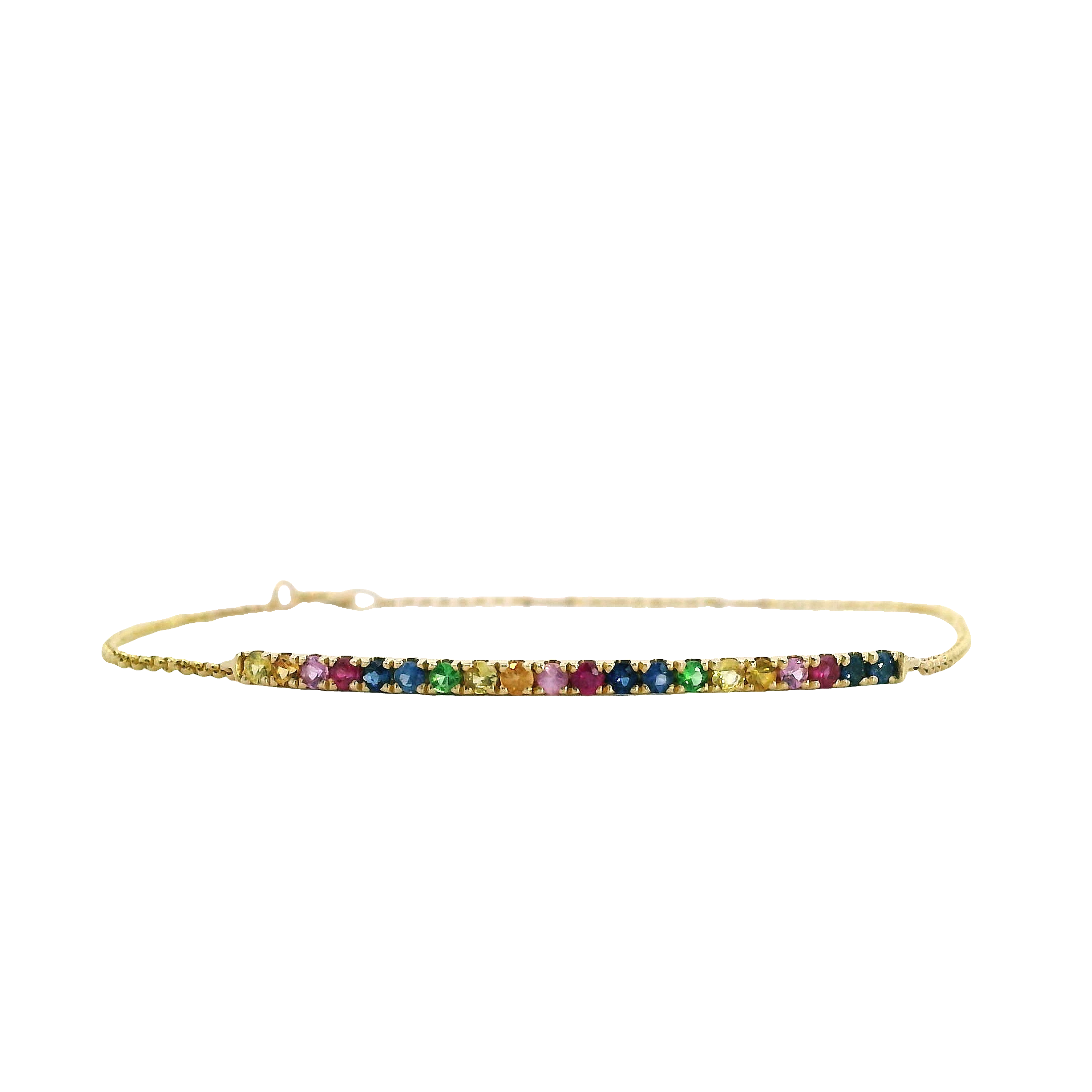 Gemstone Bracelets. 14K Yellow Gold Rainbow Sapphire Bracelet. 0.49 Total Weight Carats of Diamonds. 7 Inches.
