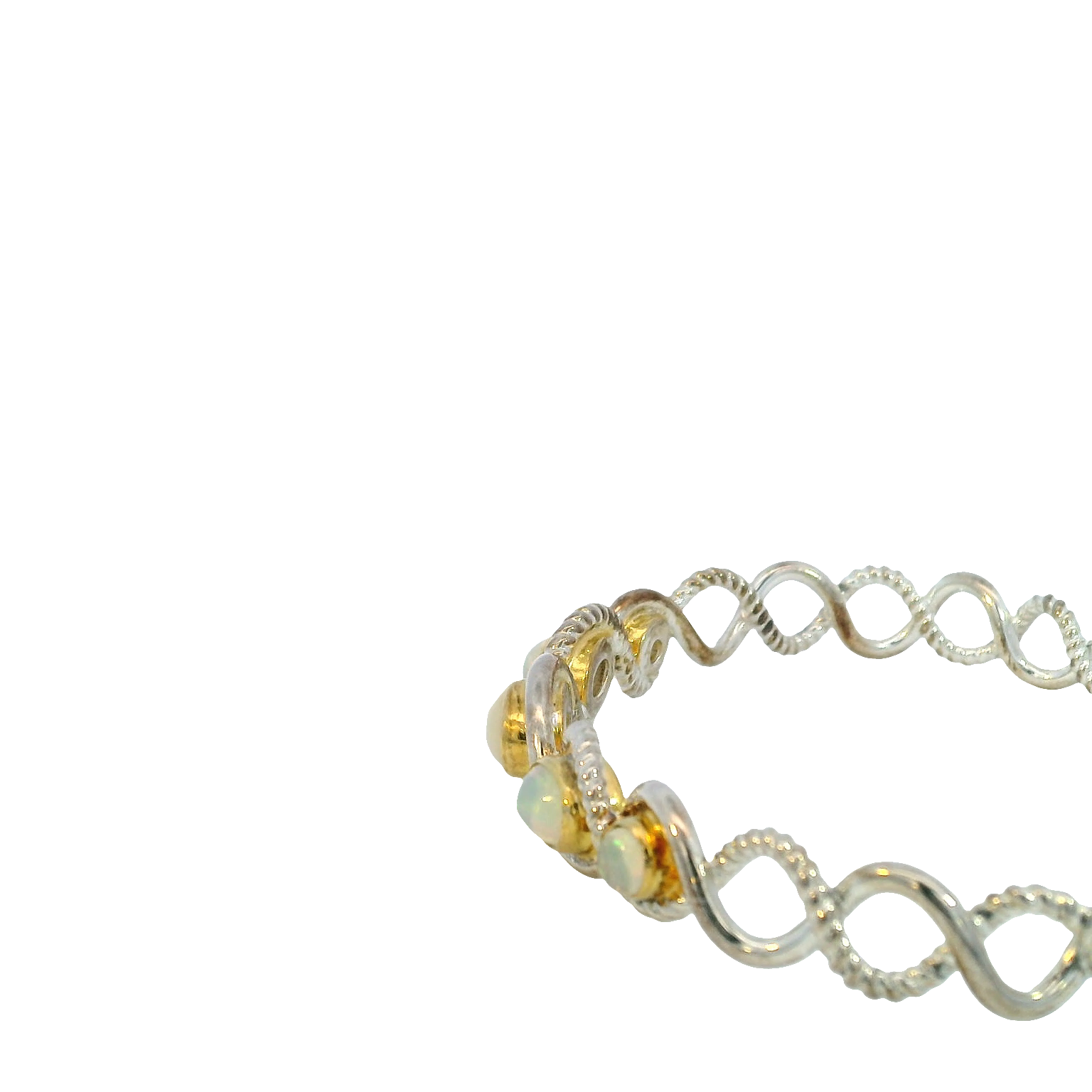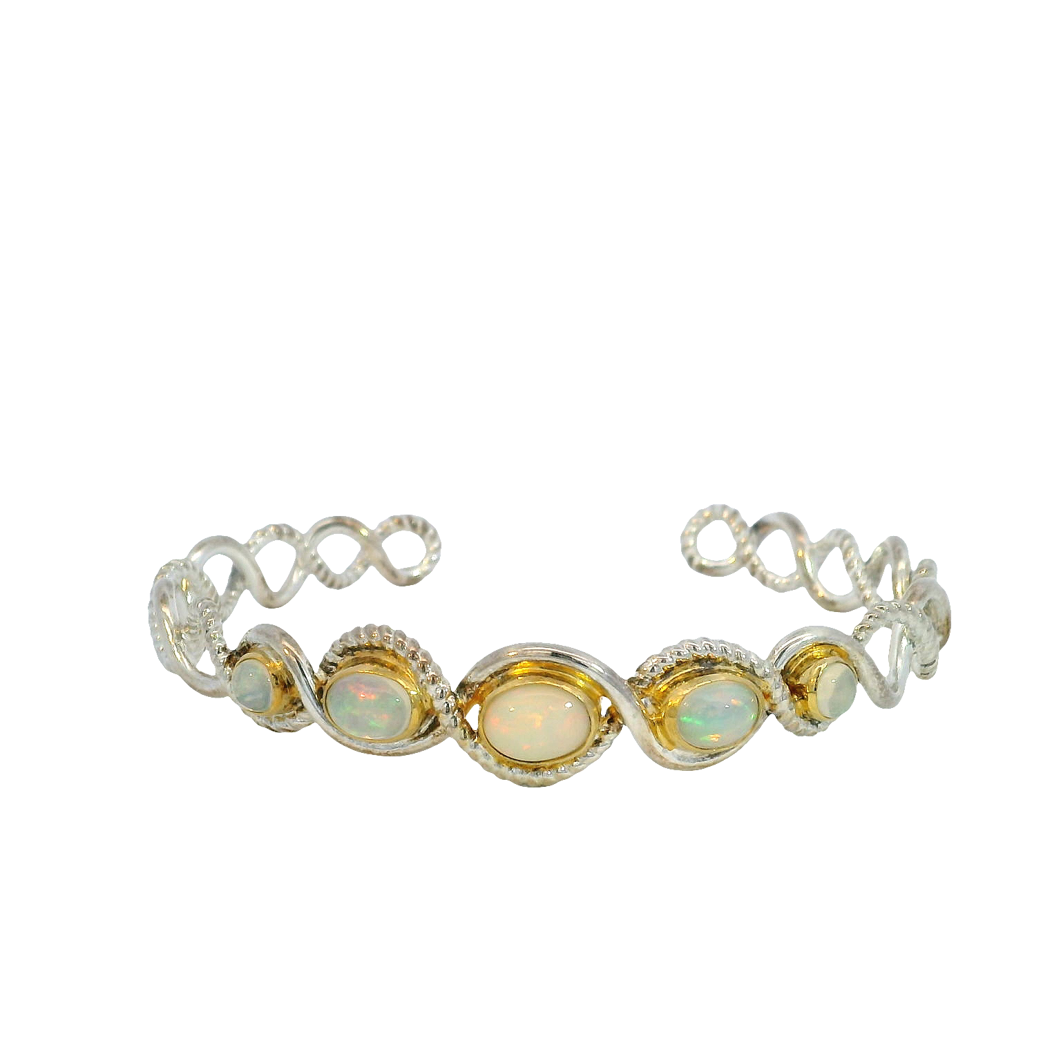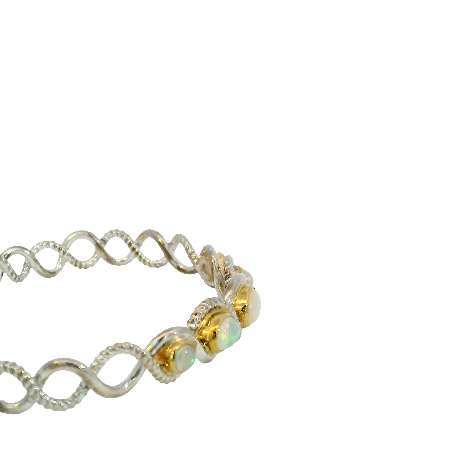 Sterling Silver and 22k Gold Vermeil Bangle Bracelet with Ethiopian Opal
