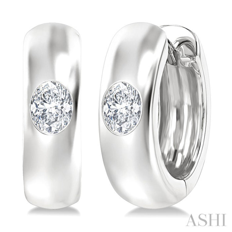 1/3 Ctw Bezel Set Oval Cut Diamond Fashion Huggie Earrings in 14K White Gold