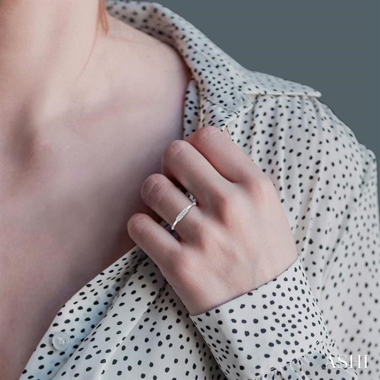 1/20 Ctw Pointed Pod Round Cut Diamond Stackable Petite Fashion Ring in 10K White Gold