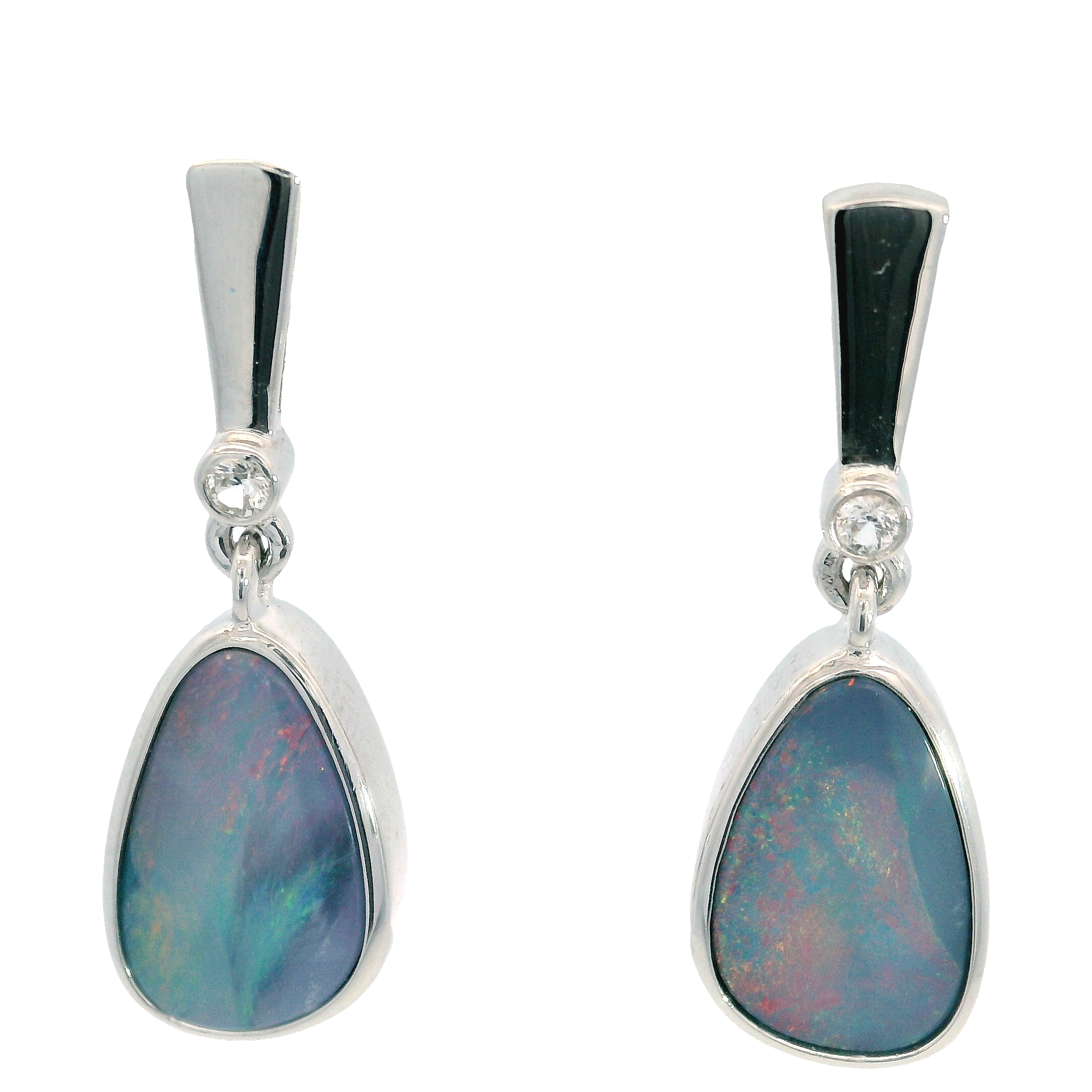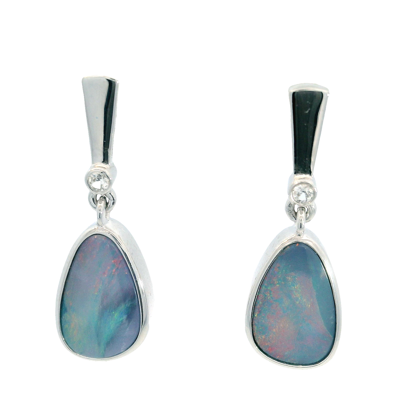 Sterling Silver Earrings. Sterling Silver Freeform Opal And Cubic Zirconia Accents Post Back Earrings.