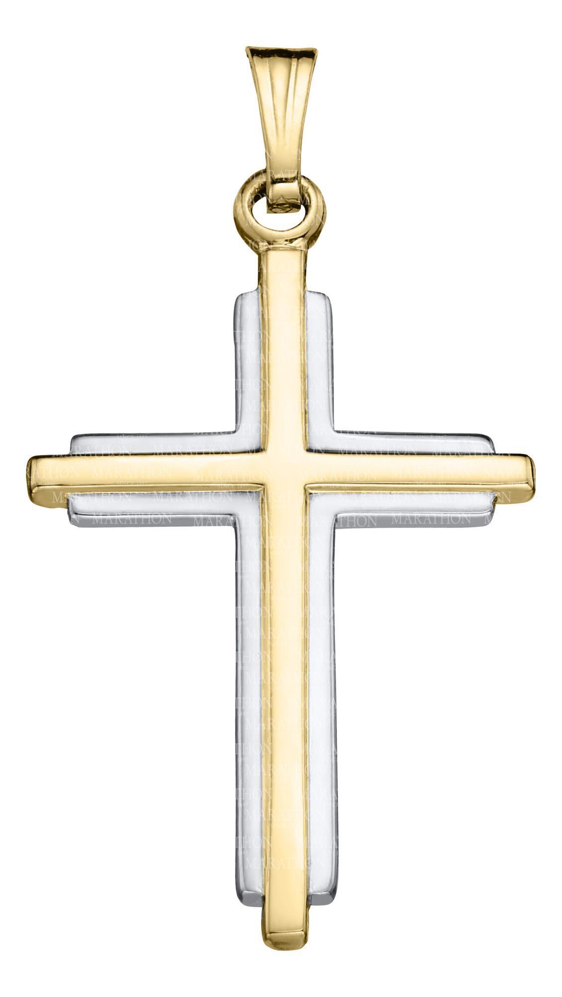 14K Two Tone Yellow And White Gold Filled Cross Pendant On 18" Gold Filled Singapore Chain With Lobster Clasp.